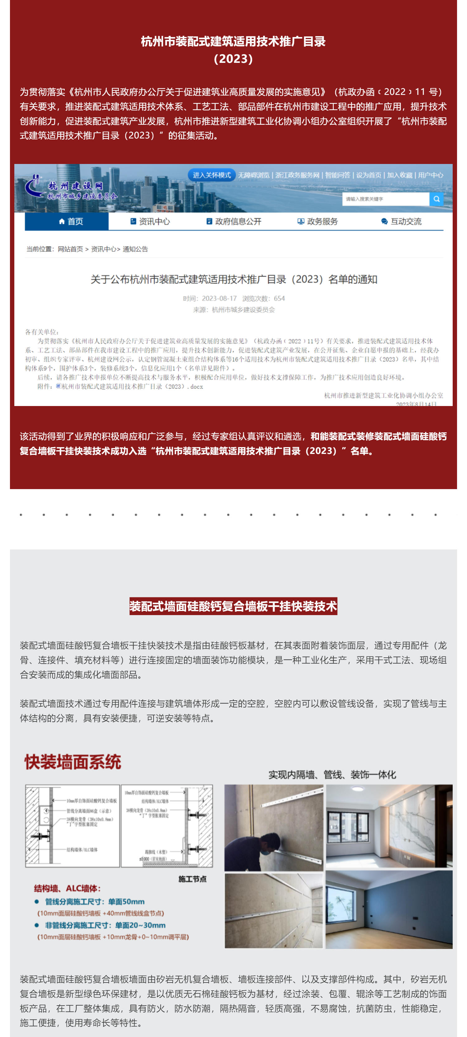 September和能裝配式墻面硅酸鈣復(fù)合墻板干掛快裝技術(shù)入選杭州市裝配式建筑適用技術(shù)推廣目錄